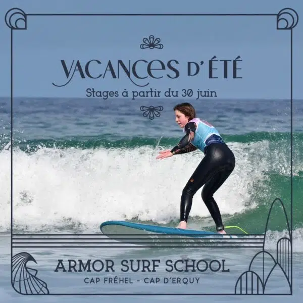 Les stages d’été ont débuté sous un beau soleil et une eau translucide. Superbes conditions pour nos élèves en cours crevettes (de 5 à 9 ans), et pour ceux en cours St Jacques (ados-adultes). L’été est la période la plus propice pour débuter le surf dans des conditions toutes douces sur les plages de Sables d’Or les Pins et des Grèves d’en Bas à Plévenon.